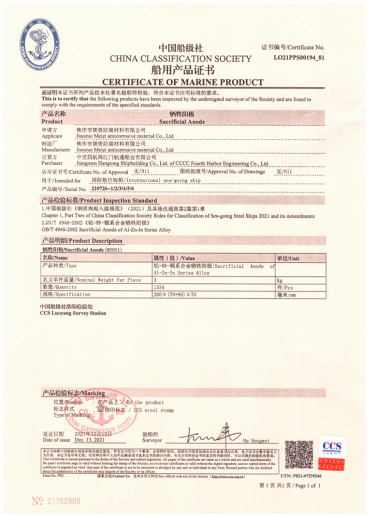 鋅合金陽(yáng)極檢測(cè)報(bào)告