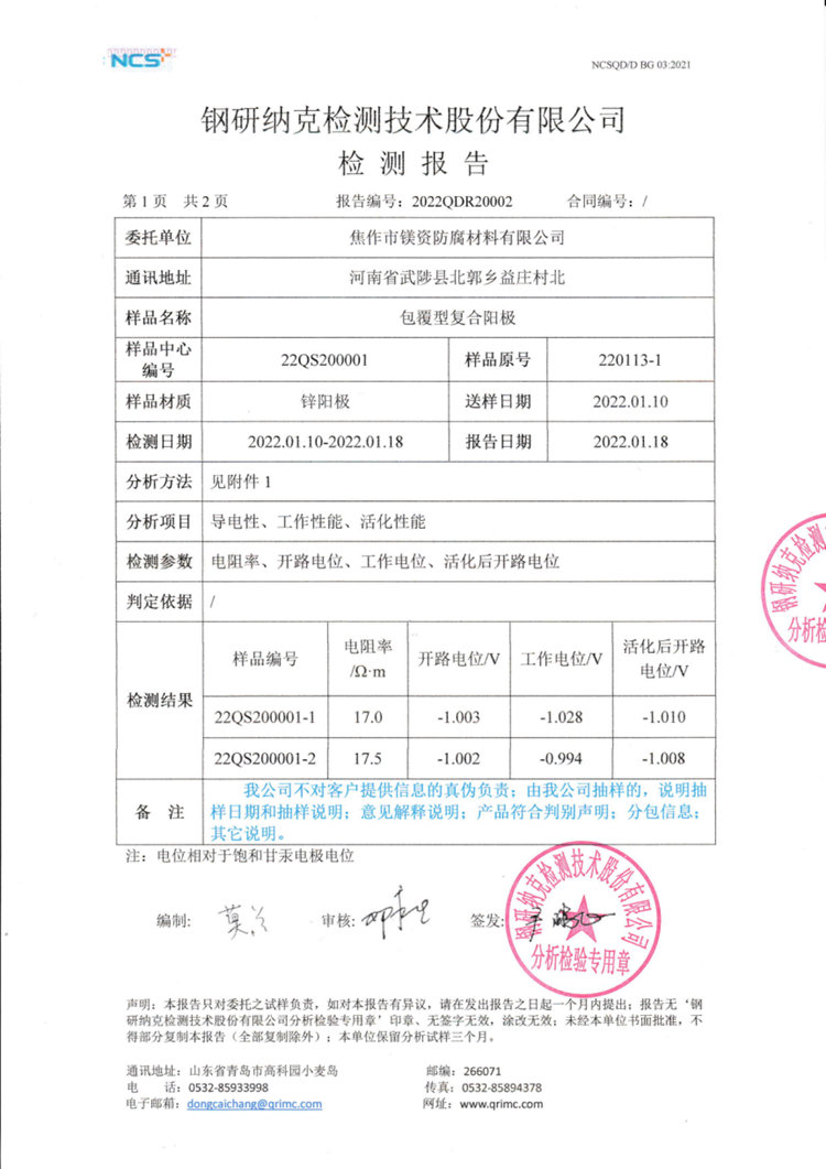 鎂合金陽(yáng)極檢測(cè)報(bào)告
